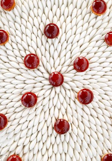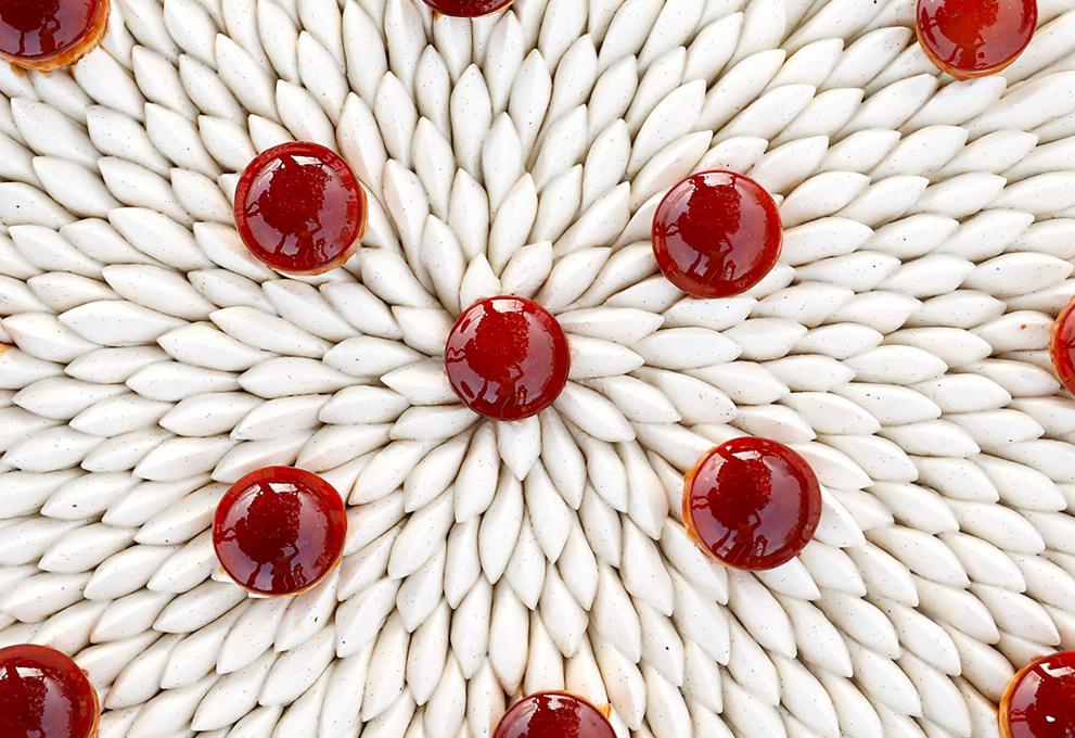 Pate sucrée, crème d’amande vanille, croustillant praliné vanille fleur de sel, crémeux vanille, crème anglaise vanille, mousse vanille